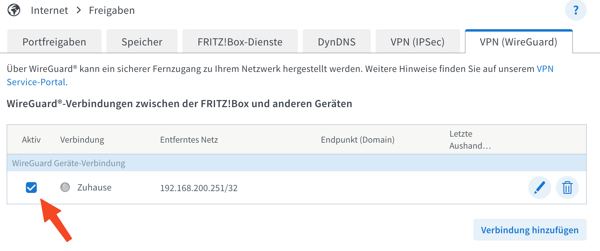 Ihr habt eine Wireguard-VPN-Verbindung eingerichtet (Einzelgerät).